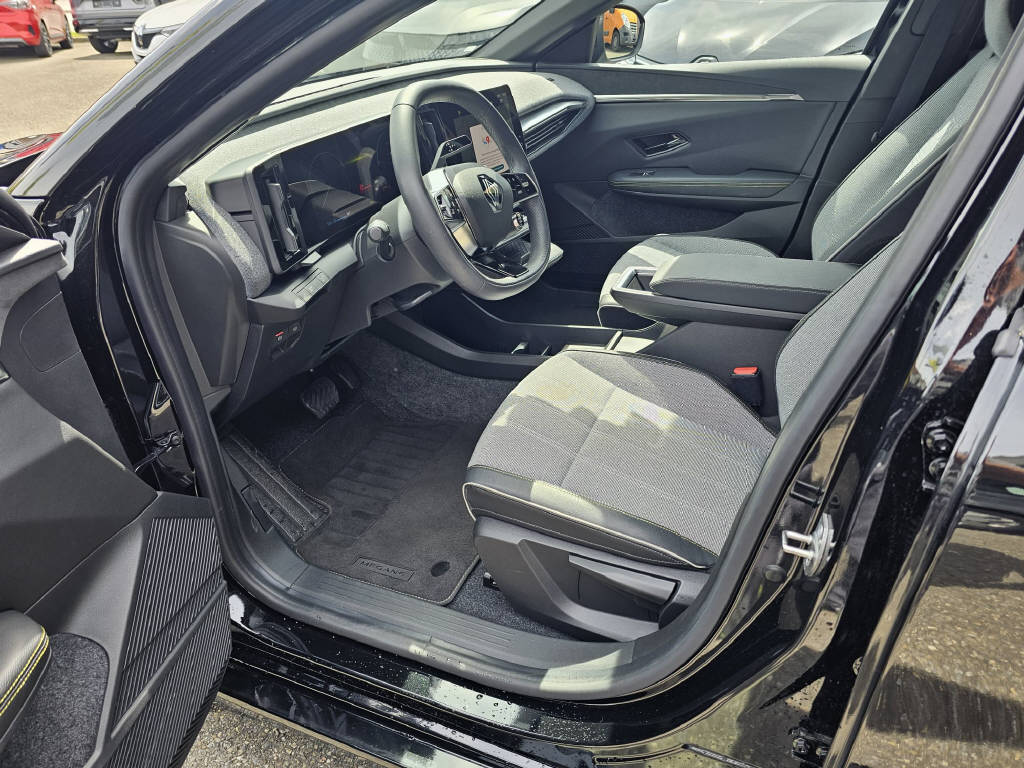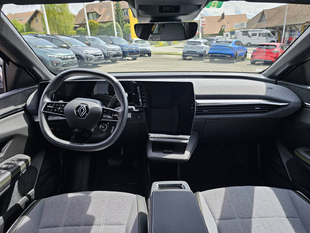| Serienausstattung | - Renault Chipkarte Keyless-Drive Hands-free - Elektrische Fensterheber vorne - Elektrische Fensterheber hinten - Aussenspiegel elektr. verstell-heizbar-anklappbar mit Memory - Regen- und Lichtsensor - Seitenscheiben im Fond und Heckscheibe getönt - Ladekabel für Wallbox - Leichtmetallfelgen 20 - Reifenreparatur-Kit - Airbag Fahrer und Beifahrerseite - Center Airbag vorne - Seitenairbag Fahrer und Beifahrerseite - Windowbags vorne + hinten - Adaptiver Fernlichtassistent - Aktiver Spurhalteassistent LKAS - Verkehrsschild-Erkennungssystem - Fussgänger-Soundmodul - Müdigkeitserkennung - Kindersitzverankerung ISOFIX hinten - Abstandswarnung - Adaptiver Tempomat ACC - Einparkhilfe hinten - Rückfahrkamera - Berganfahrhilfe - Notruf - Adaptive LED-Scheinwerfer - ABS und EBV Elektr. Bremskraftverteilung inkl. BA - ESP/ ASR - Zwei Zonen-Klimaautomatik - Lenkrad beheizbar - Lederlenkrad - Sitzbank hinten 1/3 - 2/3 umklappbar - Lendenwirbelstützen Fahrersitz inkl. Höheneinstellung - Automatisch abblendbarer Innenspiegel - Ambientebeleuchtung - Mittelkonsole mit Armlehne - Digitale Instrumentierung - Digitaler Radioempfang DAB+ - 2 USB-C Anschlüsse - 2 USB-C Anschlüsse hinten - Apple Car Play/ Android Auto - Wireless Charging für mobile Geräte - Multimediasystem/ Navigation - Details siehe gültige Preisliste des Importeurs - Keine Gewähr auf die Angaben der Serienausstattungen